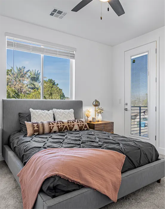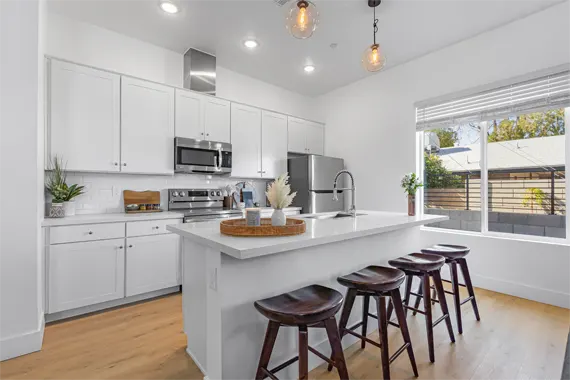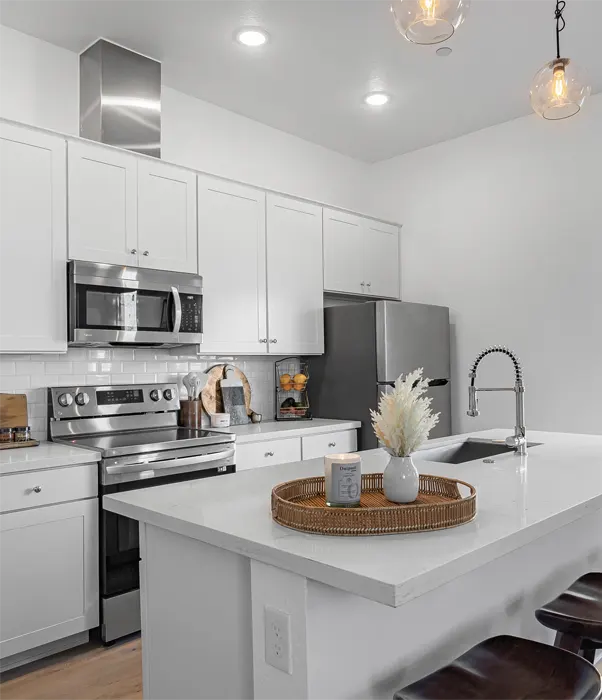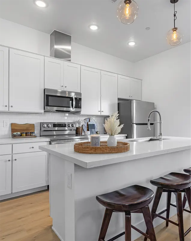 Two-story rental townhomes with a split bedroom floor-plan, contemporary finishes, private patios, and endless natural light.