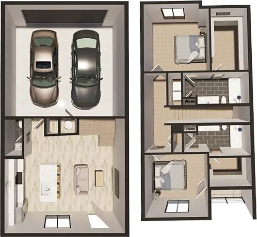Comprised exclusively of townhomes, every apartment at The Jax offers the same high-quality standard of living, featuring expansive living space and bathroom on the first floor, and split-primary bedrooms on the second floor giving you comfort and separation for your work, your family, or your play.